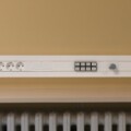 The device installation channel should be equipped directly with the connections for the projector and three AC-sockets. A monitor output connector should also be installed, which mirrors the current projector image. The control unit with buttons should also be directly integrated and there should be a potentiometer to control the volume. A main switch controls the power connection as shown in Figure 4. The cables run space-savingly and discreetly hidden in the cable duct, which nestles in the corner. A photomontage is shown in Figure 6 below.